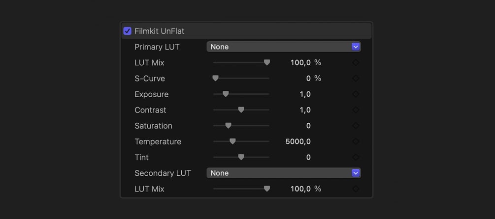 Filmkit UnFlat is a new Final Cut Pro plugin for converting ANY flat or log footage to Rec709. UnFlat takes de-logging further than just slapping on a LUT: it gives you fine-grained control over the LUT, S-curve, exposure, contrast, saturation, white balance and tint.